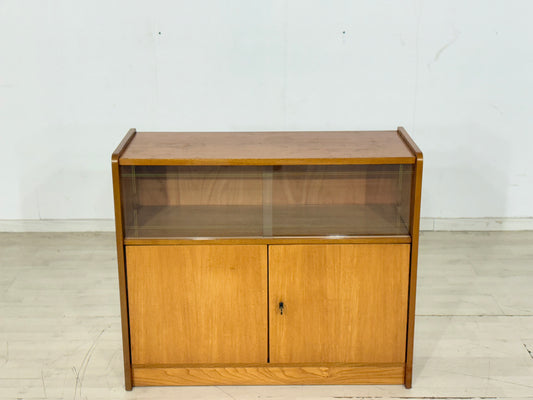 Mid-Century Kommode / kleine Vitrine – 60er Jahre Vintage Cabinet – Rüster (Ulme) Holz