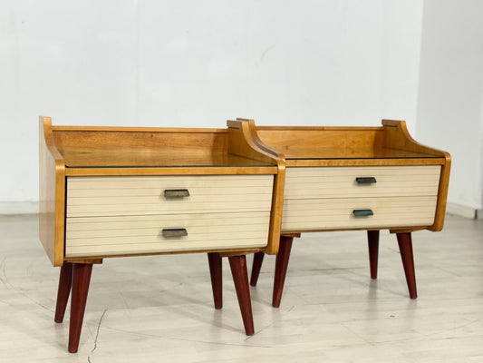 2x Mid Century Nachttische Nachtschränke Nachttisch Beistelltische Vintage