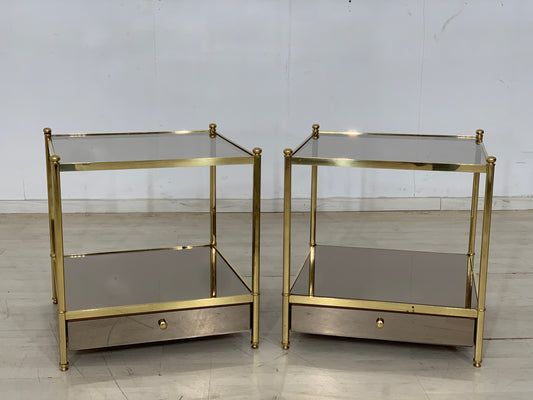 2x 70er Jahre Nachttische Glastische Nachtschränke Beistelltische Vintage