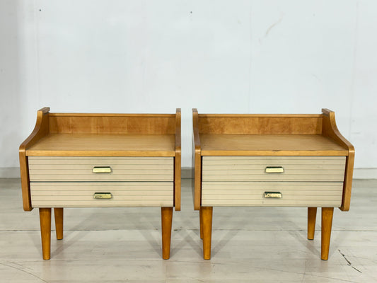 2x Mid Century Nachttische Nachtschränke Beistelltisch Kommode Vintage
