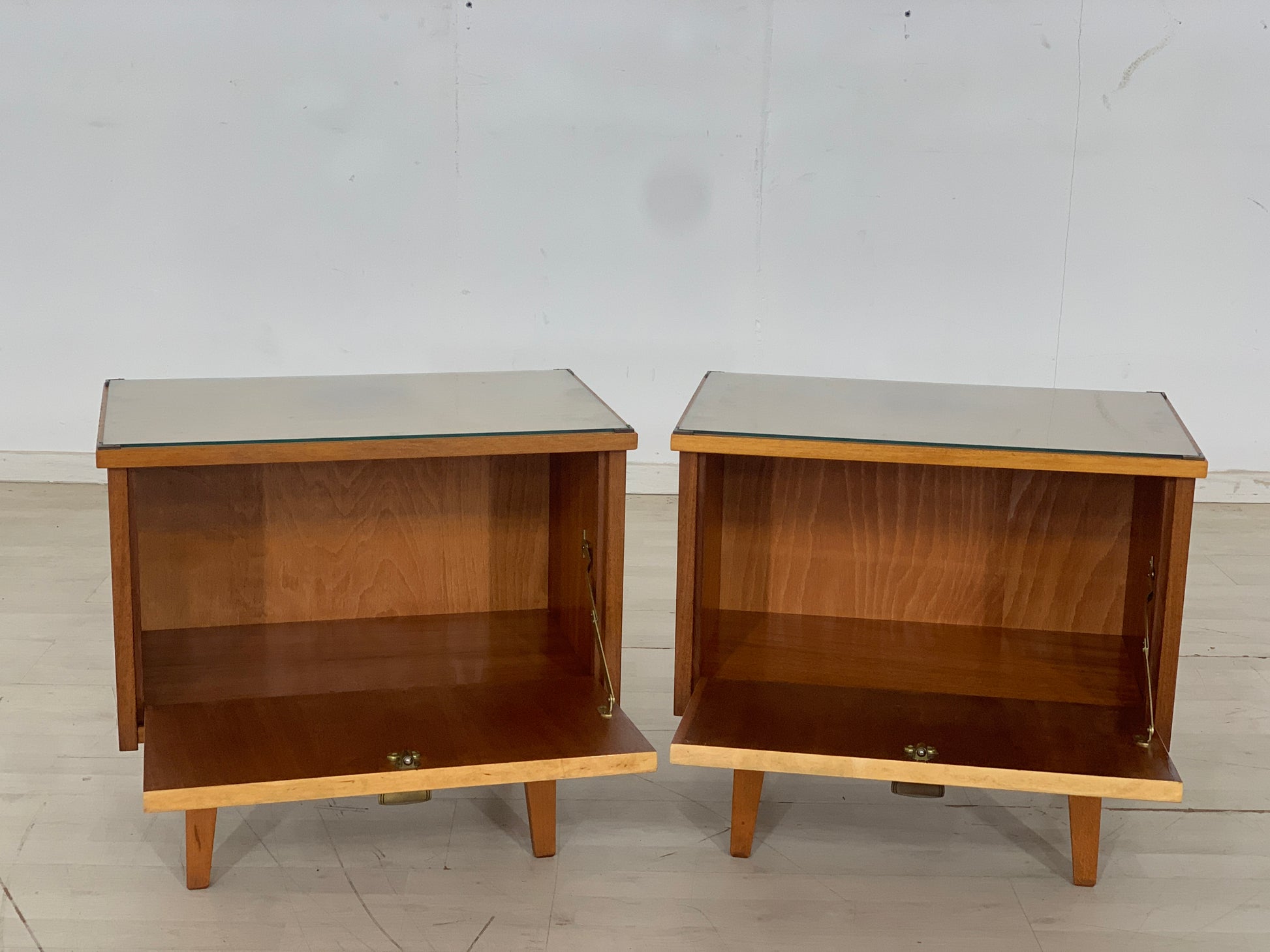 For sale are two very beautiful bedside tables. The glass is removable.