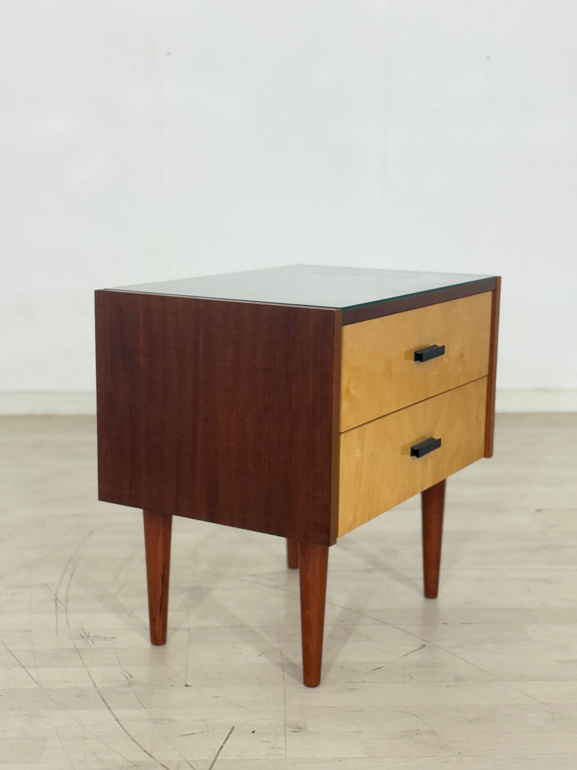 Niedlicher Nachttisch aus den 60ern zu verkaufen. Der Originalzustand ist gut erhalten, das Glas ist abnehmbar. Ideal für Vintage-Liebhaber.