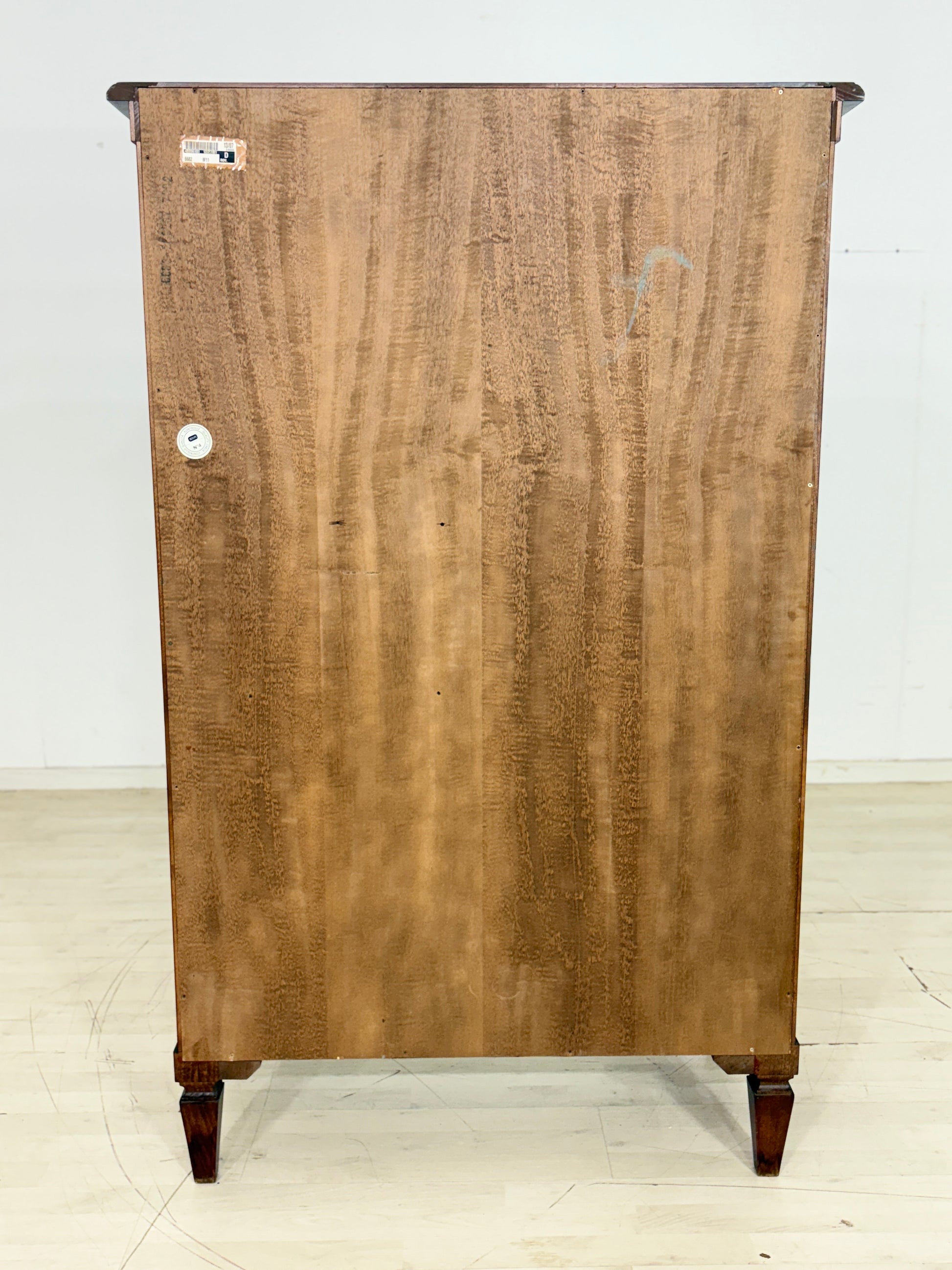 Das hochwertige Nussbaumholz und die warme Farbgebung verleihen dem Möbelstück einen eleganten, zeitlosen Charakter.