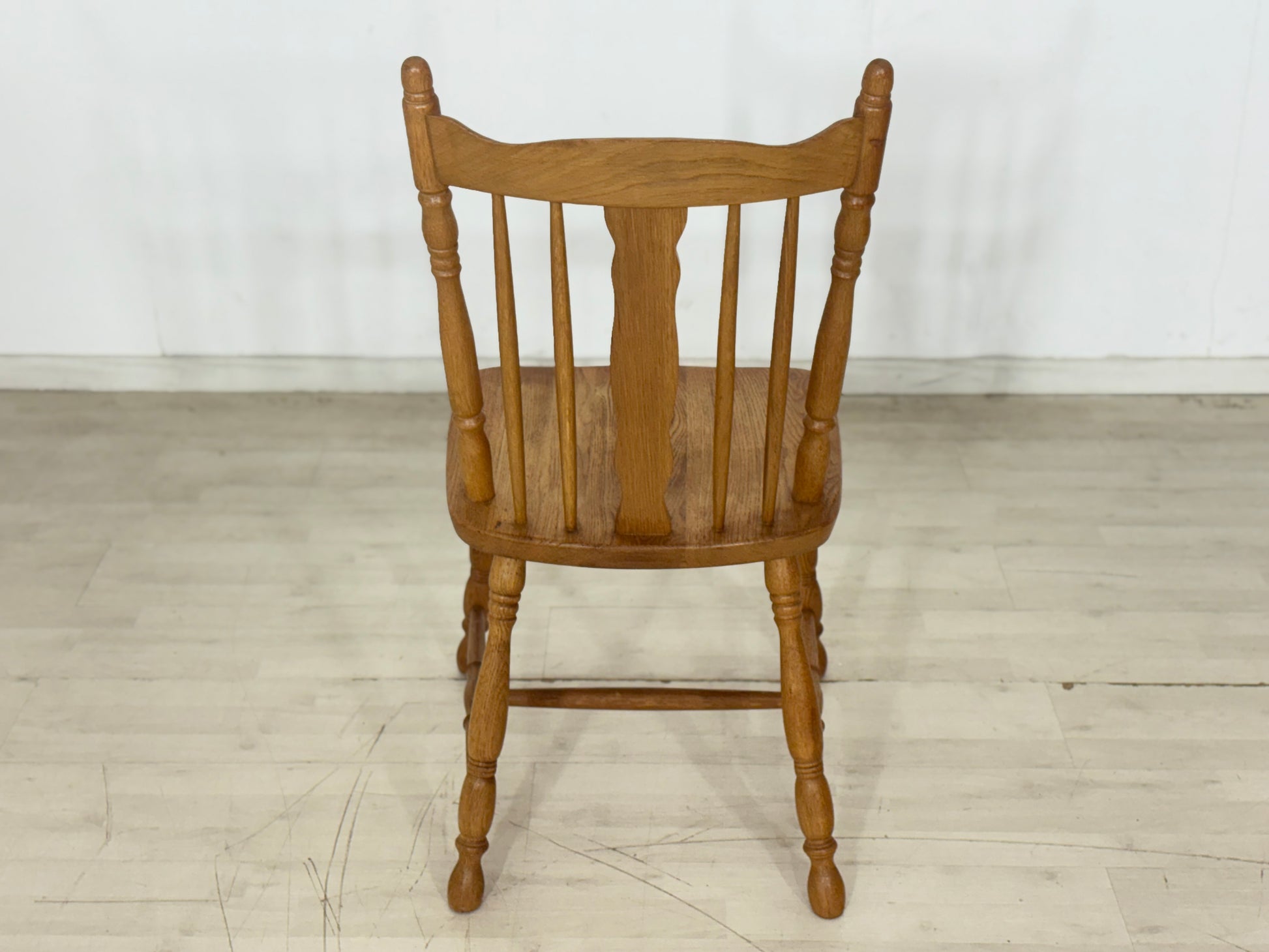 Zum Verkauf steht dieser charmante Holzstuhl im zeitlosen Windsor- bzw. Landhausstil. Der Stuhl besticht durch seine solide Verarbeitung aus warmtonigem Holz und die klassische Formgebung mit den gedrechselten Beinen und der charakteristischen Rückenlehne mit Spindeln und einem zentralen Zierbrett. Er befindet sich in einem gepflegten, stabilen Zustand und verleiht jedem Raum eine gemütliche, rustikale Atmosphäre. Ob als Solitär im Flur oder als Teil einer Sitzgruppe am Esstisch – dieser Stuhl ist ein echter Klassiker, der sich vielseitig kombinieren lässt.