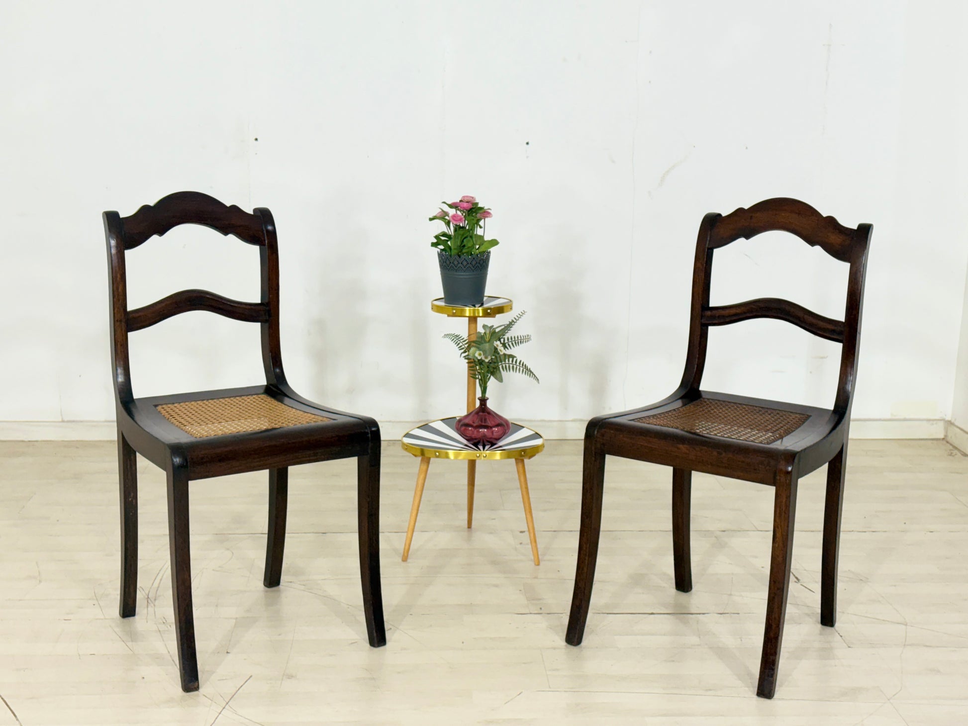 2x Sehr schöne Biedermeier Stühle Esszimmerstühle Wiener Korbgeflochten Stuhl Antik um 1880