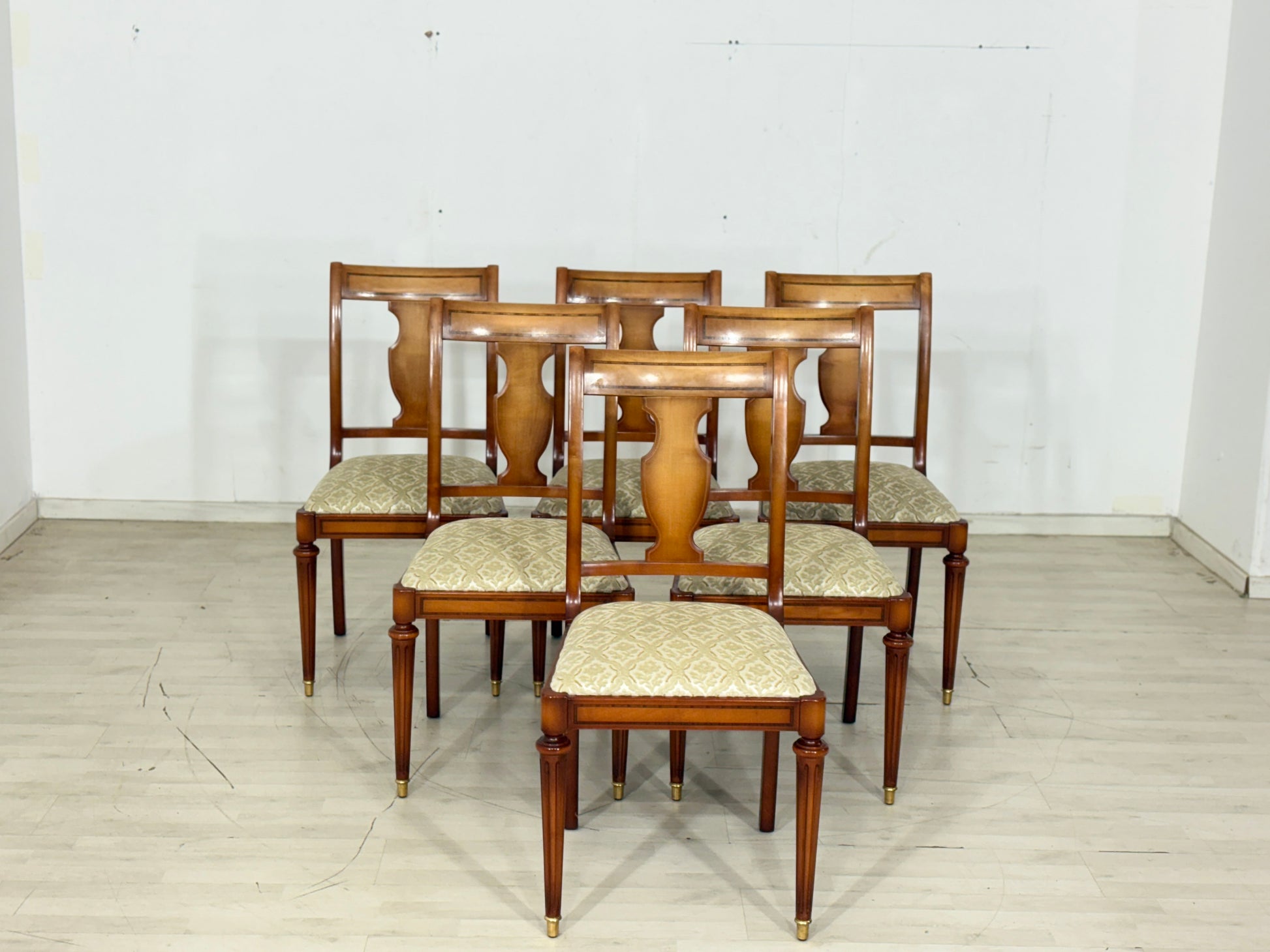 Zum Verkauf stehen sechs sehr hochwertige Vintage-Stühle der renommierten Manufaktur Warrings. Die Stühle sind aus edlem Kirschholz gefertigt und bestechen durch ihre klassische Eleganz und die für Warrings typische, erstklassige Verarbeitungsqualität.