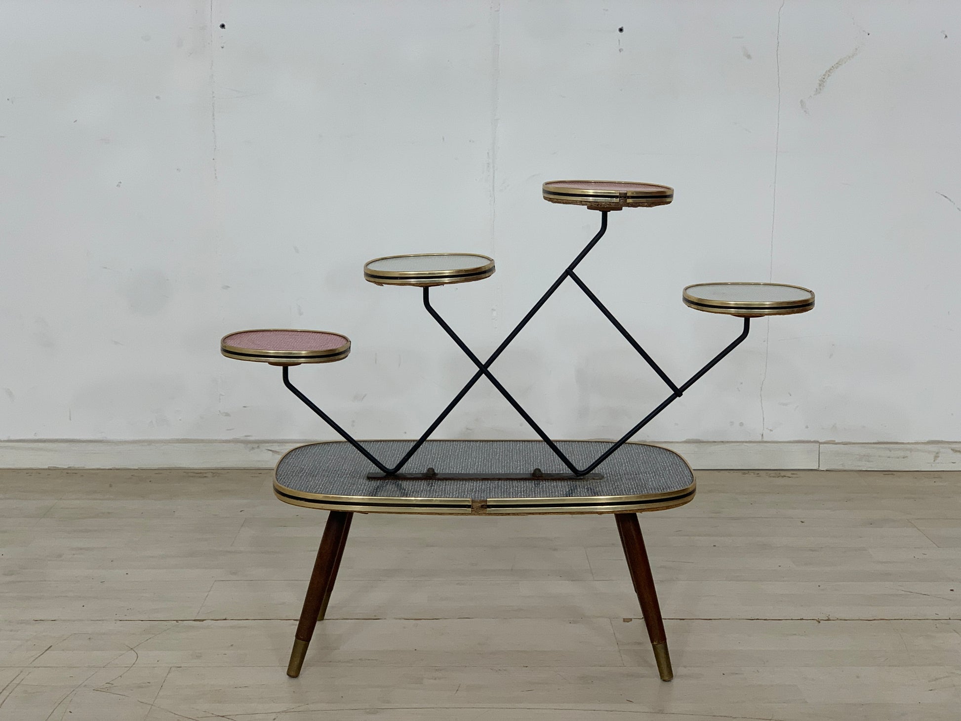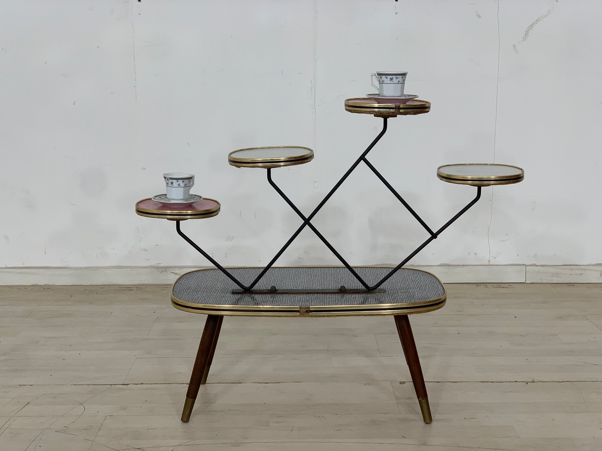 Table d'appoint vintage à fleurs, table à plusieurs niveaux
