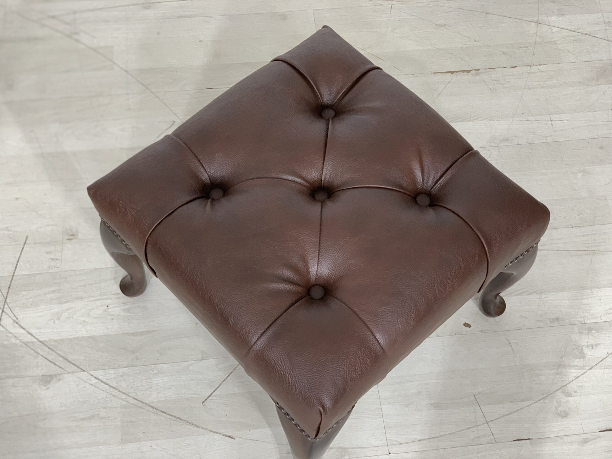CHESTERFIELD TABOURET BANC REPOSE-PIEDS CUIR VÉRITABLE