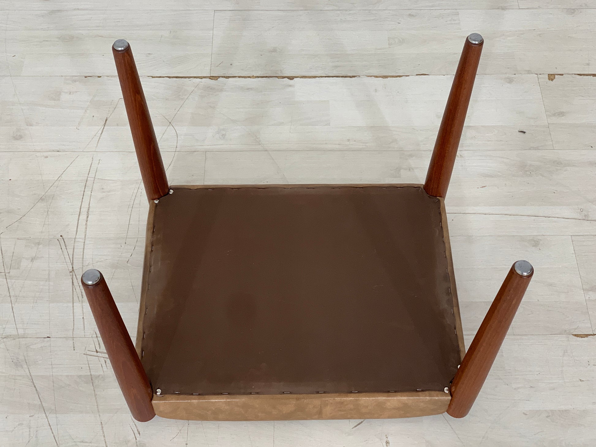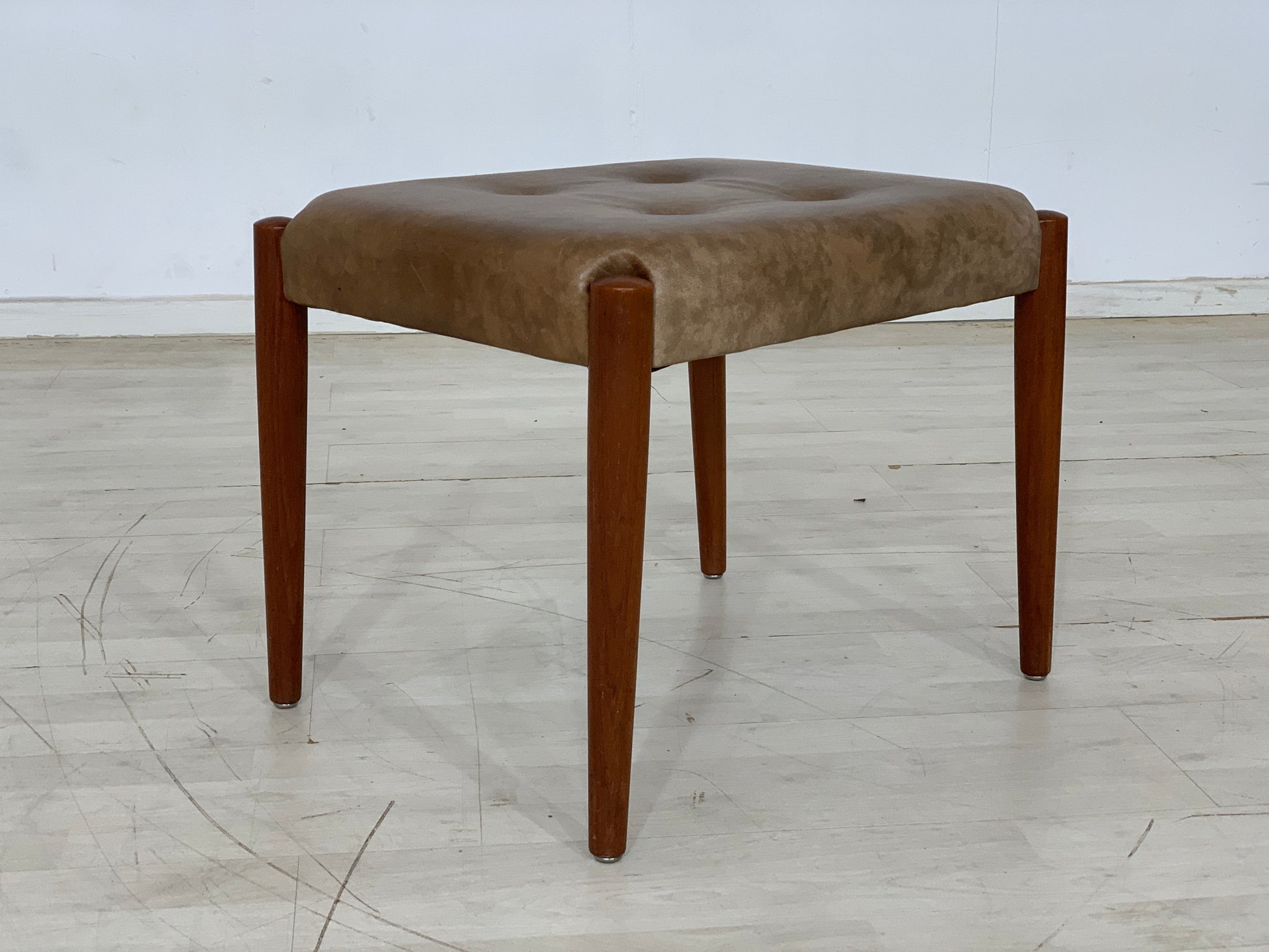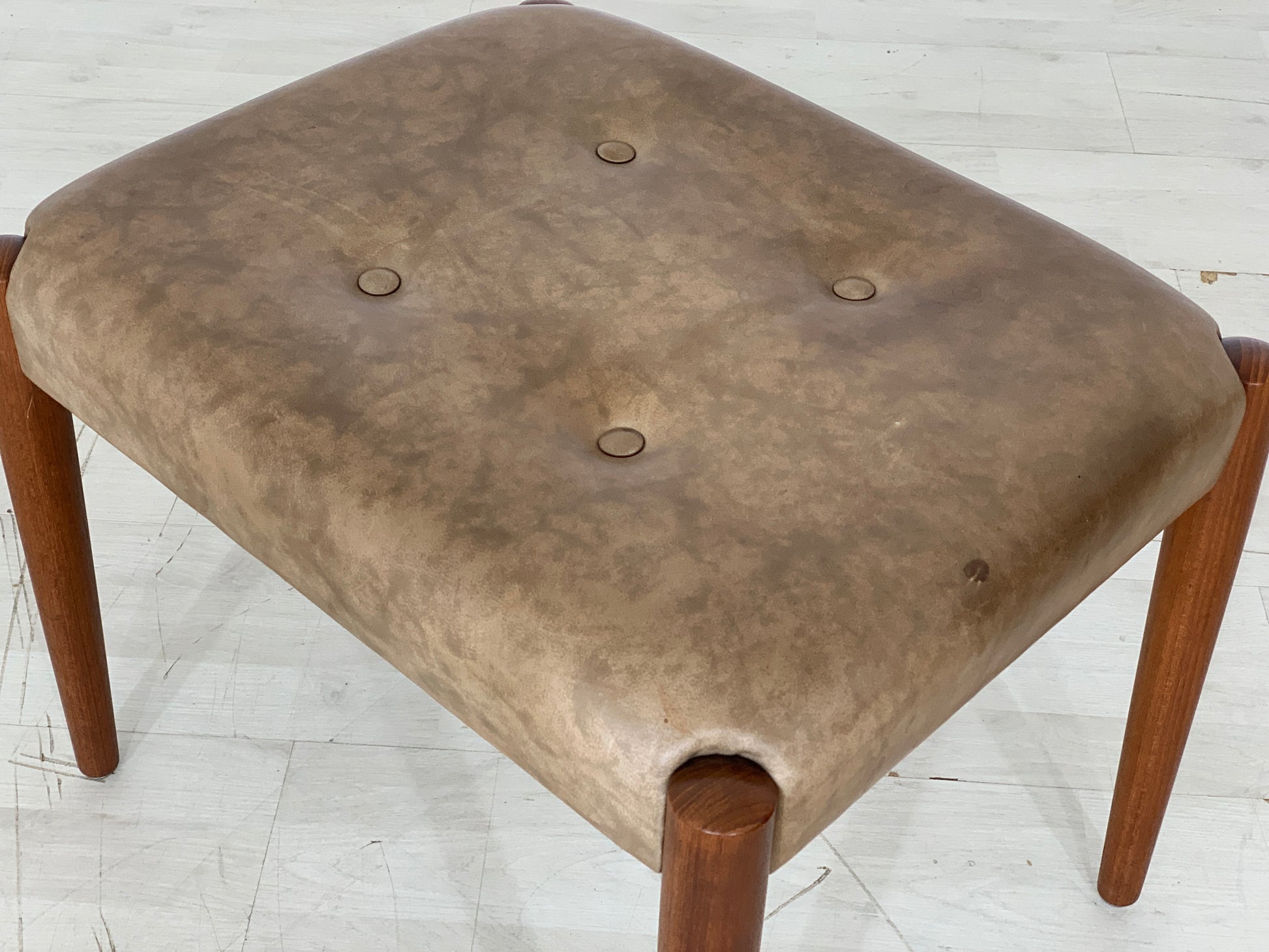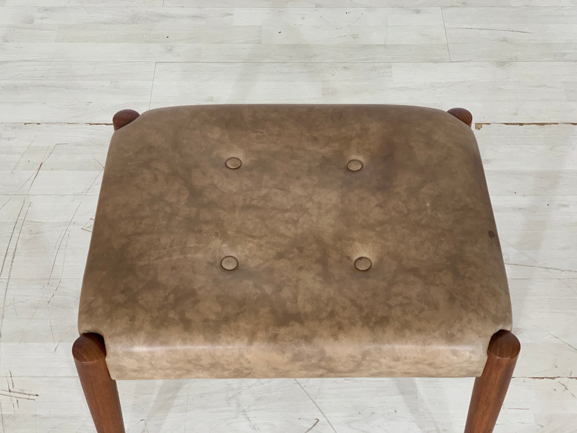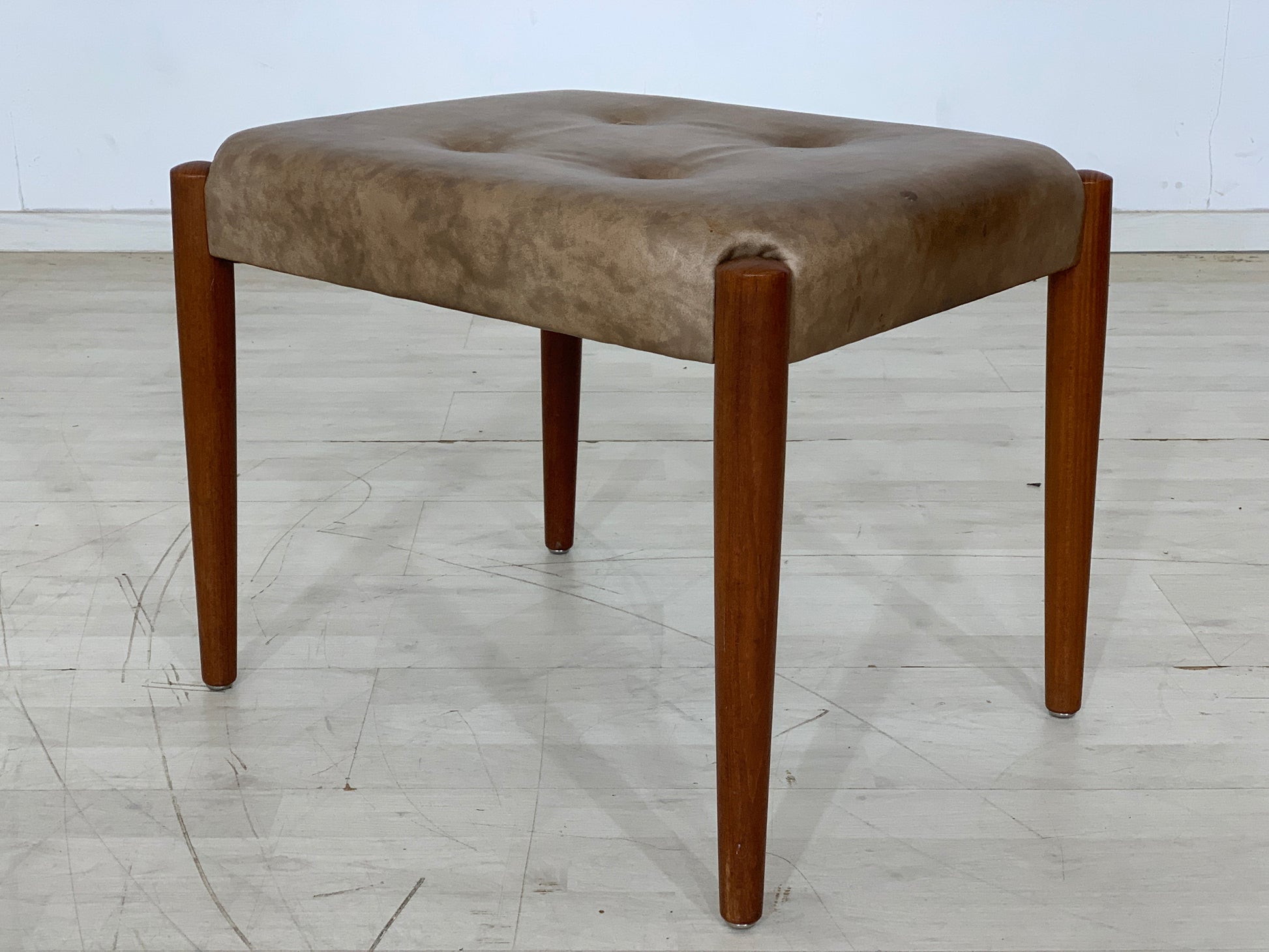 Tabouret danois en teck, siège, repose-pieds, repose-pieds en cuir