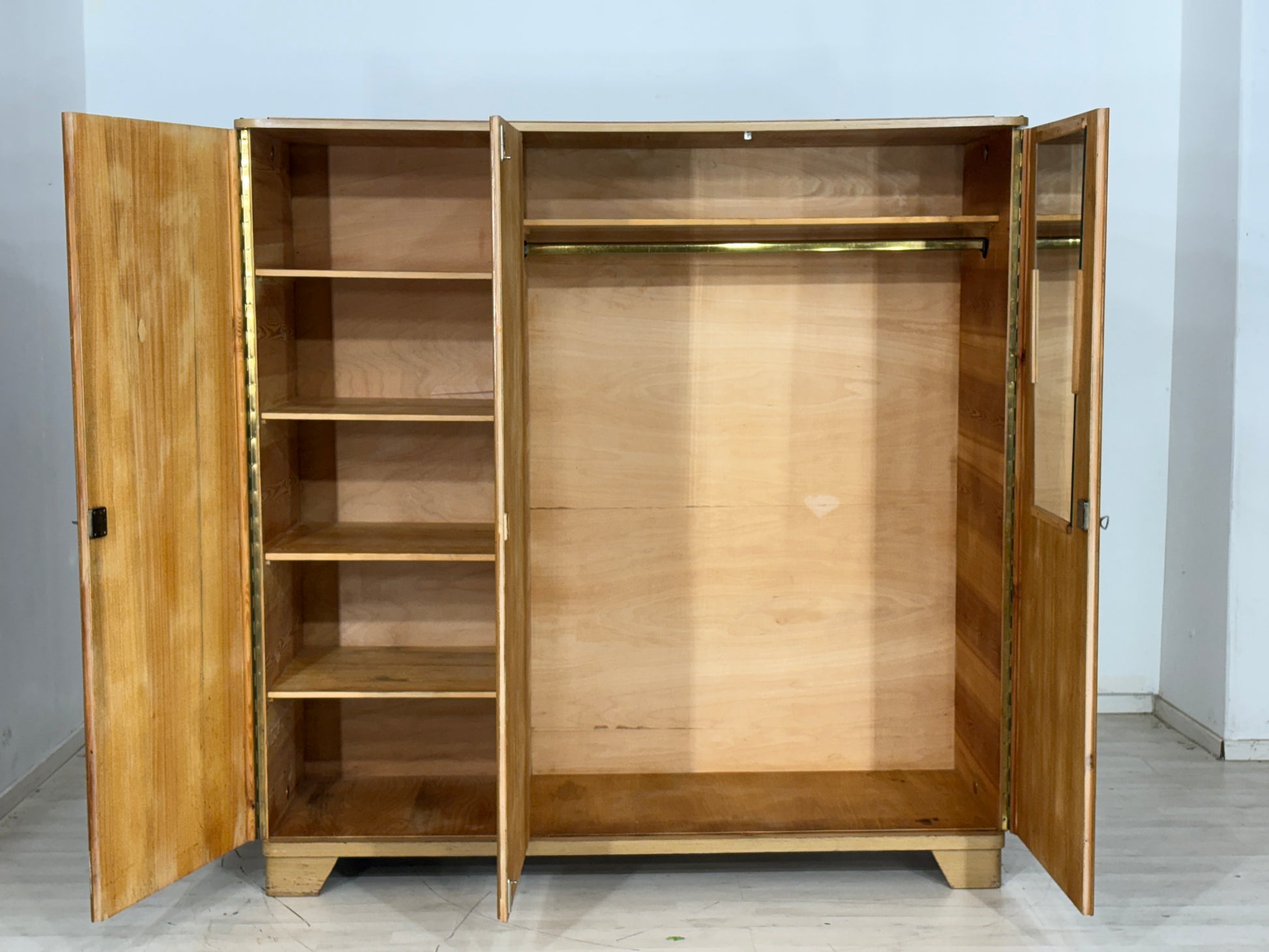 Mid Century Wäscheschrank Schrank Kleiderschrank 3-Türer Vintage