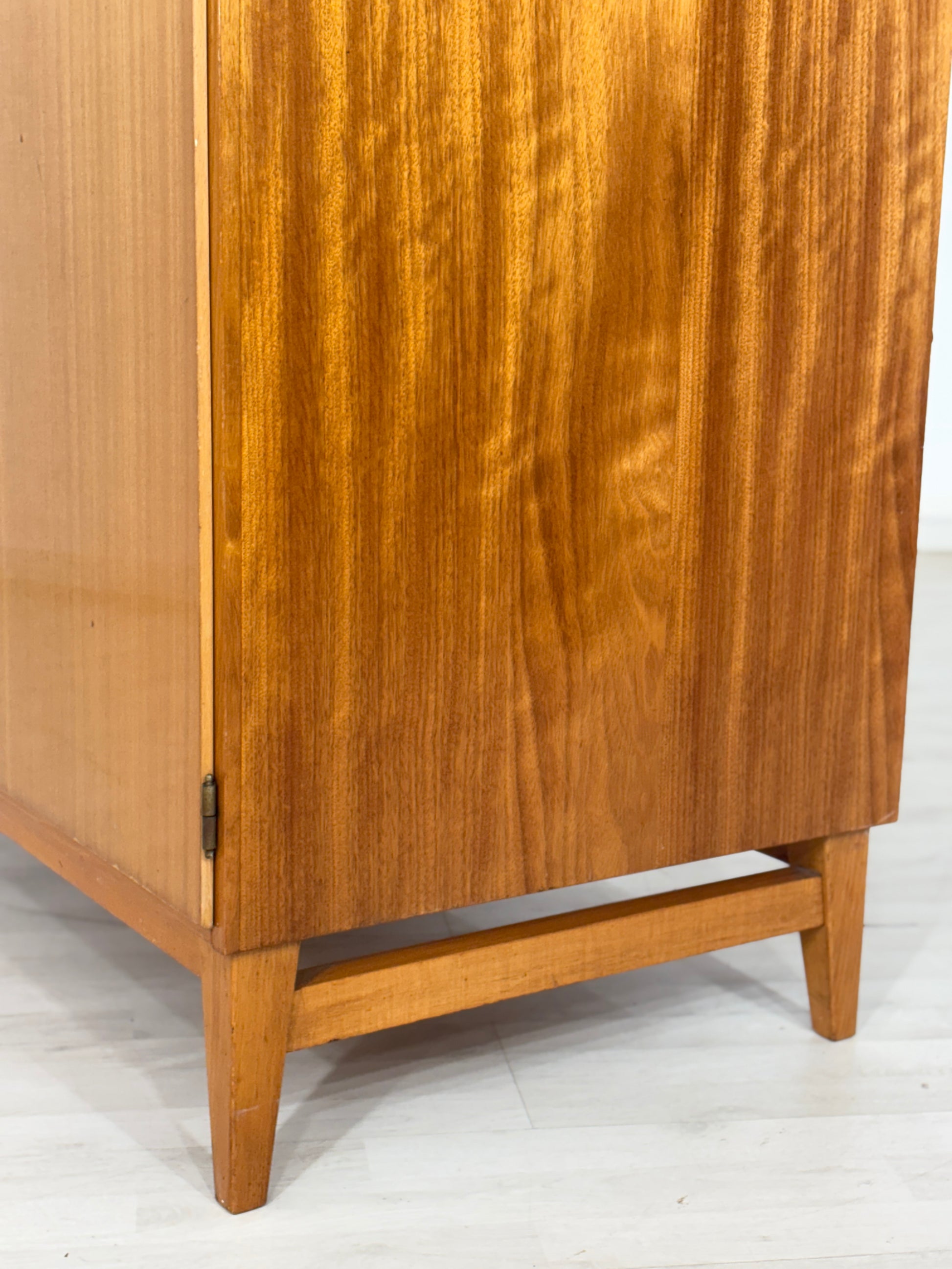 Zum Verkauf steht ein wunderschöner, zweitüriger Vintage-Kleiderschrank von aus den 1960er Jahren. Er besticht durch sein schlichtes Design und die elegante Birke-Holzmaserung.