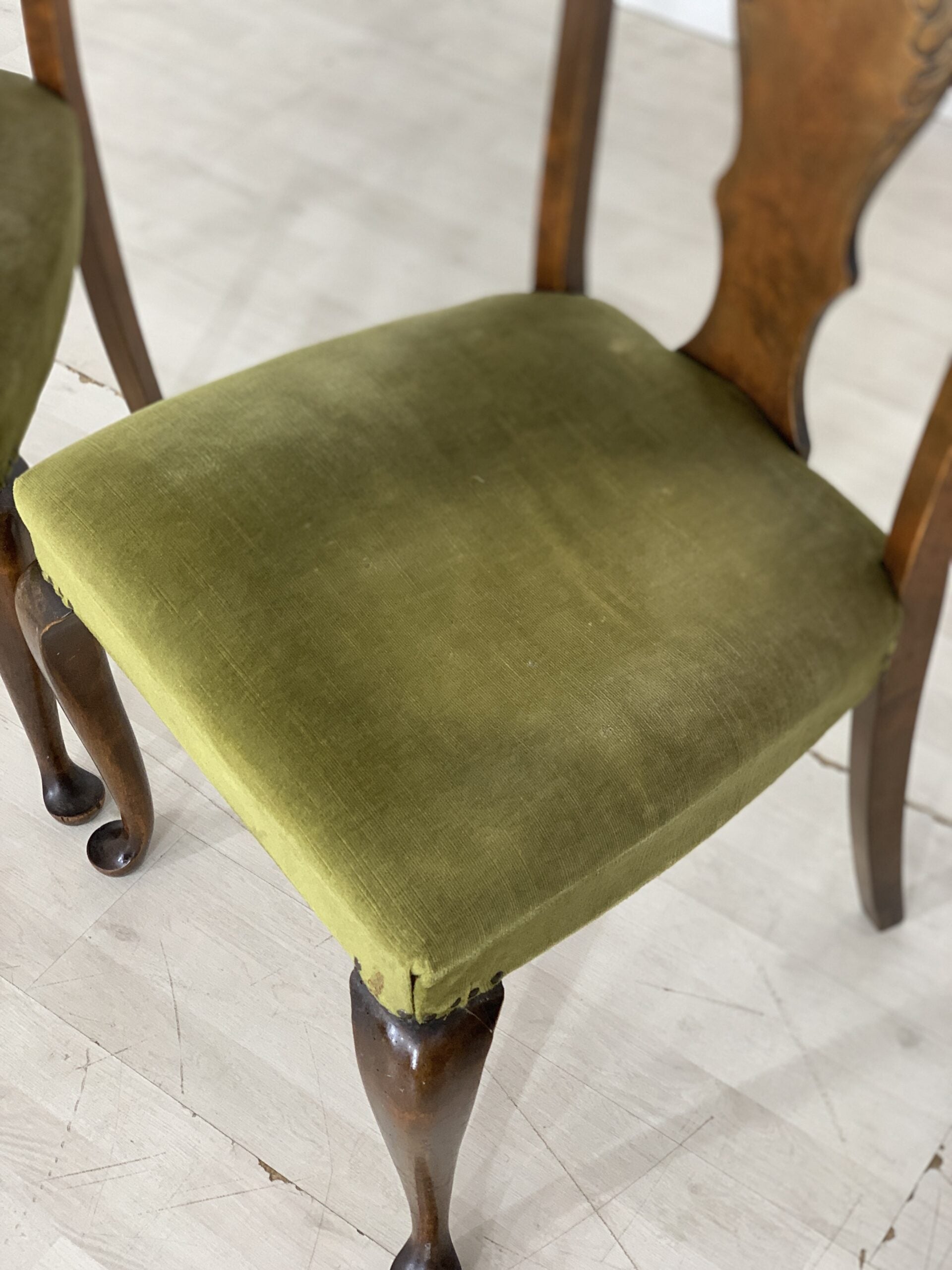 Zum Verkauf stehen zwei Chippendale Stühle. Leider ist die Sitzfläche von einem Stuhl auch gesessen und sollte neu gepolstert werden.