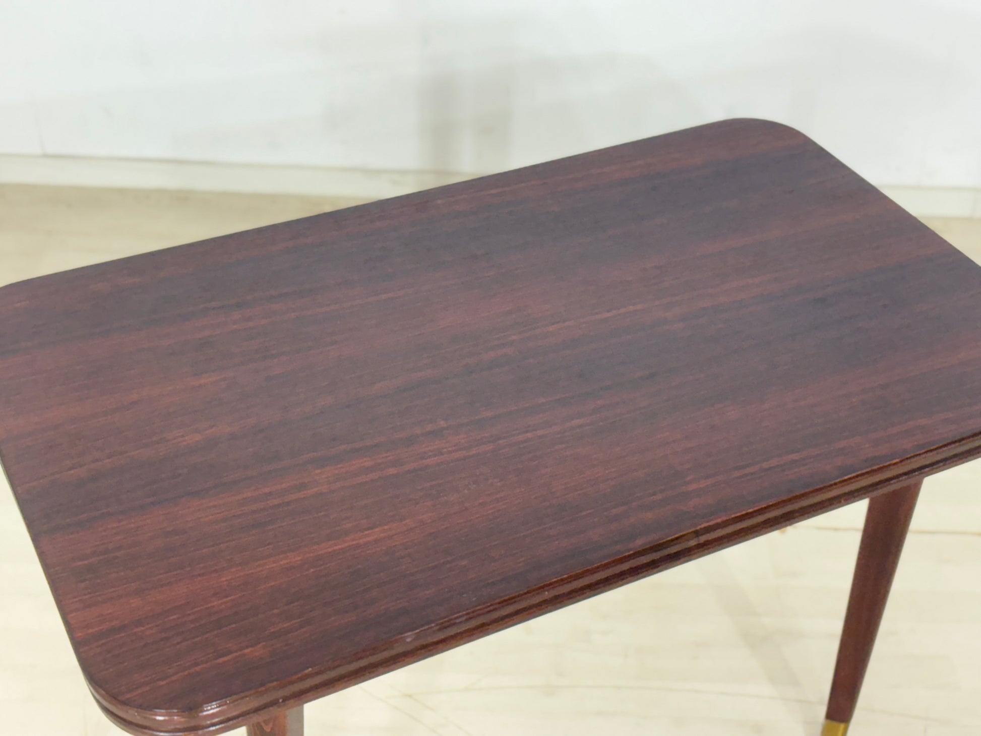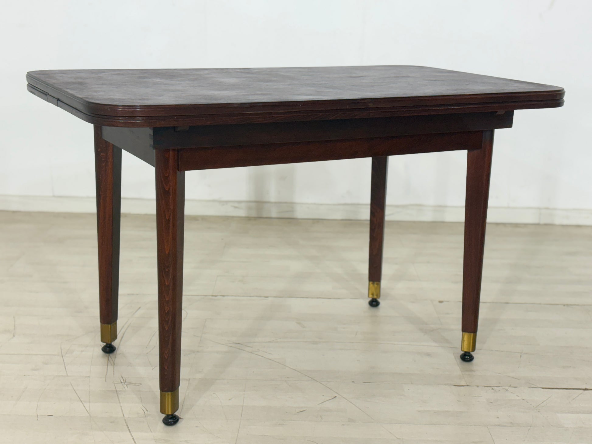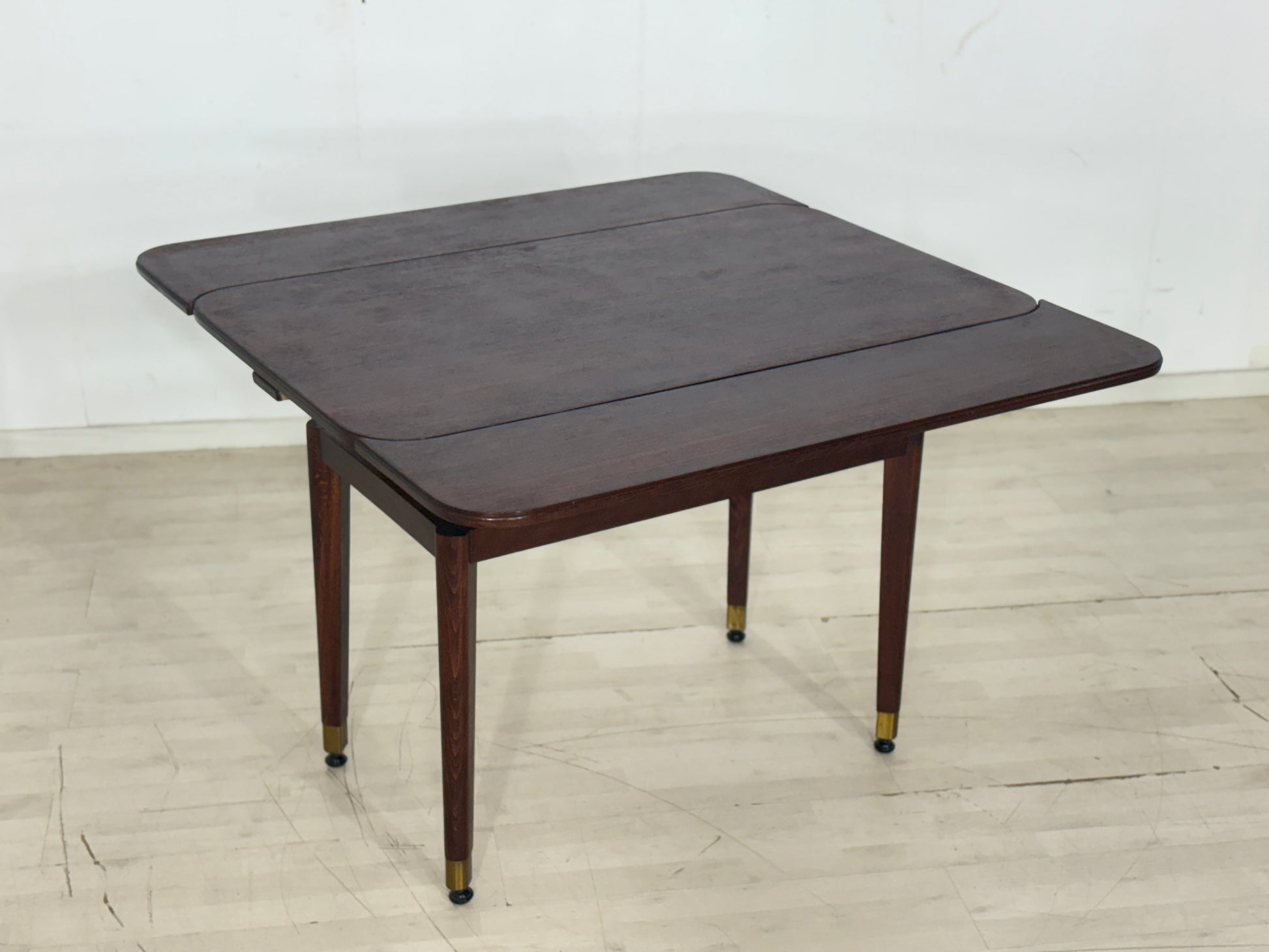 The slender legs with elegant brass tips give the table a refined touch. The surface has been freshly sanded and oiled by us, so it shines in new splendor. This is the perfect kitchen table, combining retro charm with modern convenience.