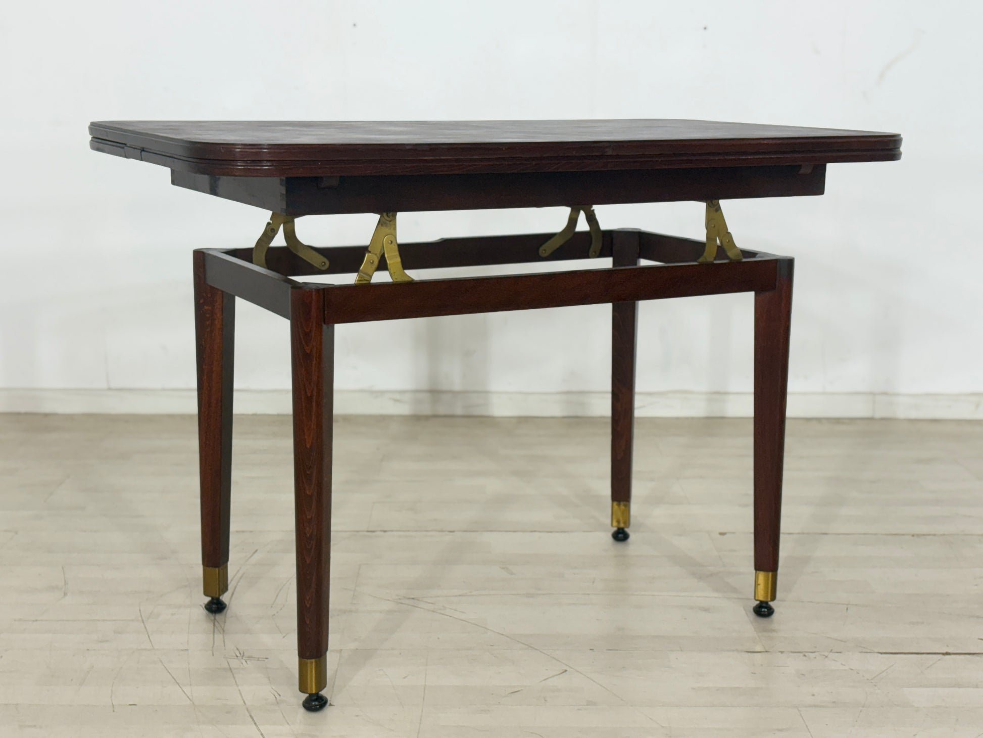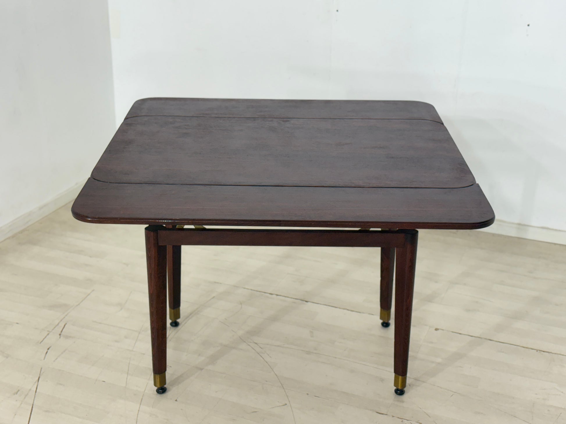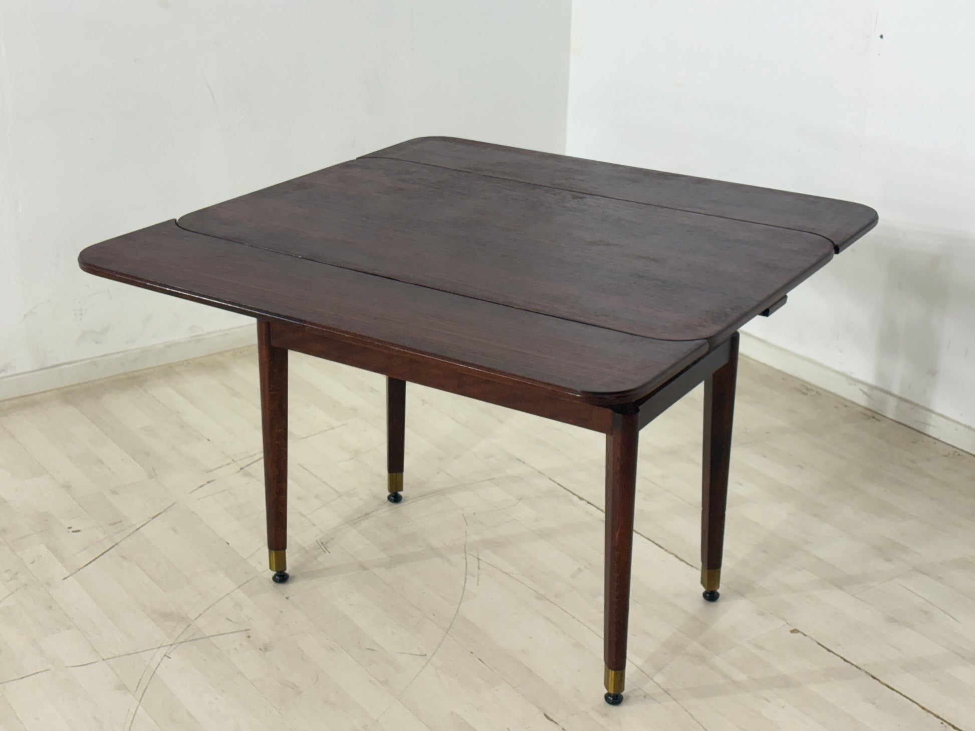 The slender legs with elegant brass tips give the table a refined touch. The surface has been freshly sanded and oiled by us, so it shines in new splendor. This is the perfect kitchen table, combining retro charm with modern convenience.