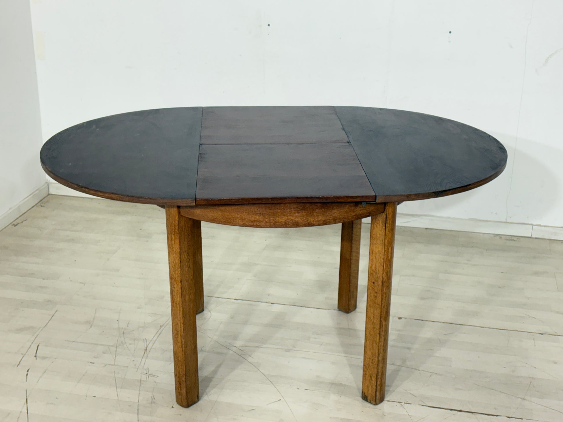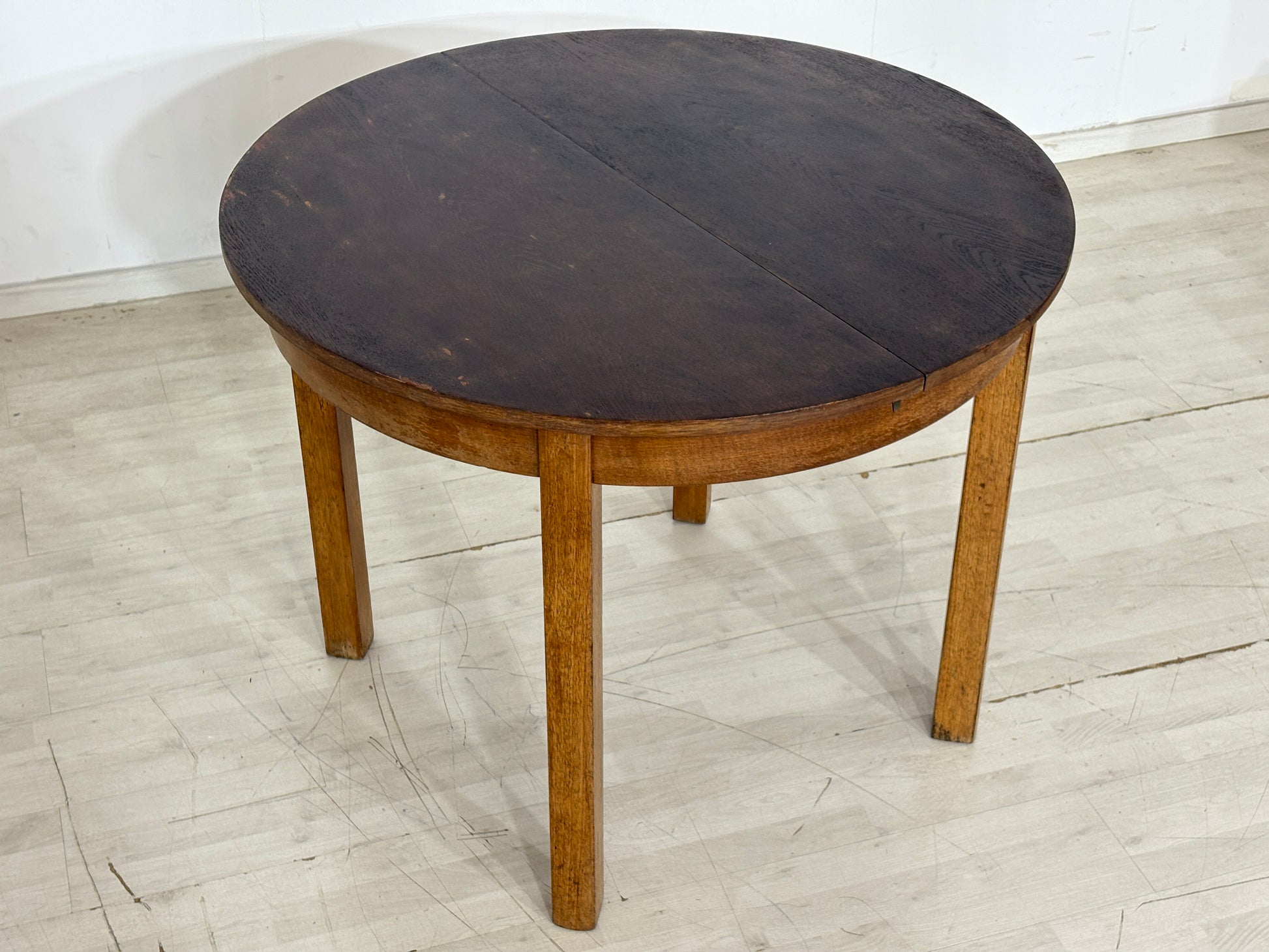 Art Deco Esstisch / Runder Küchentisch / Ausziehbarer Holztisch – um 1940