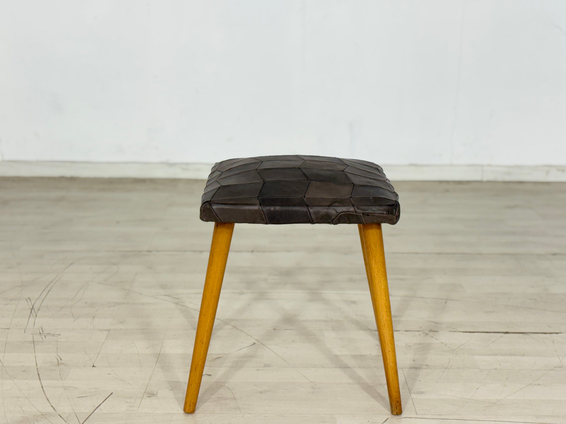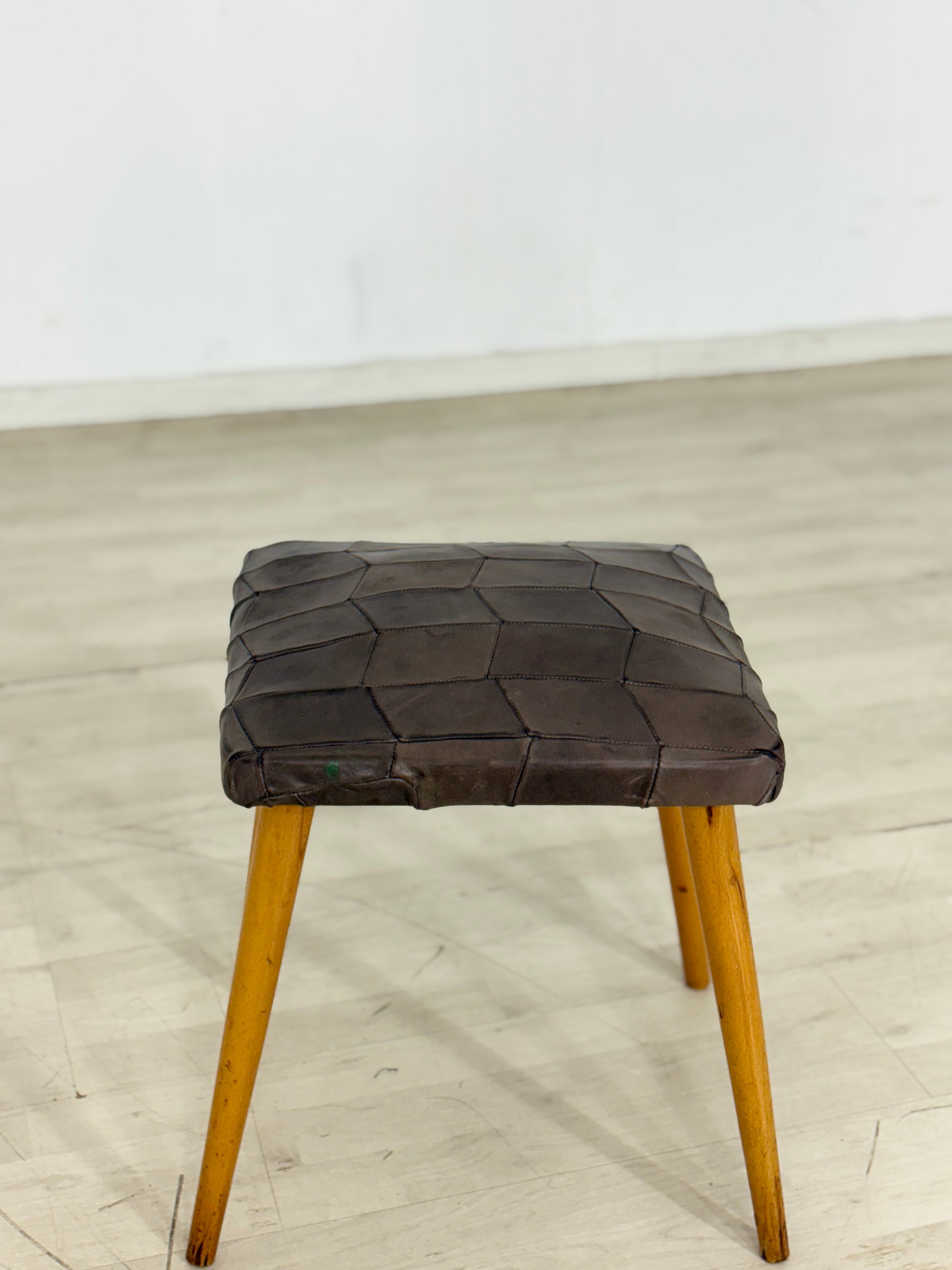 Mid-Century Hocker mit Lederbezug – Vintage Design 60er Jahre