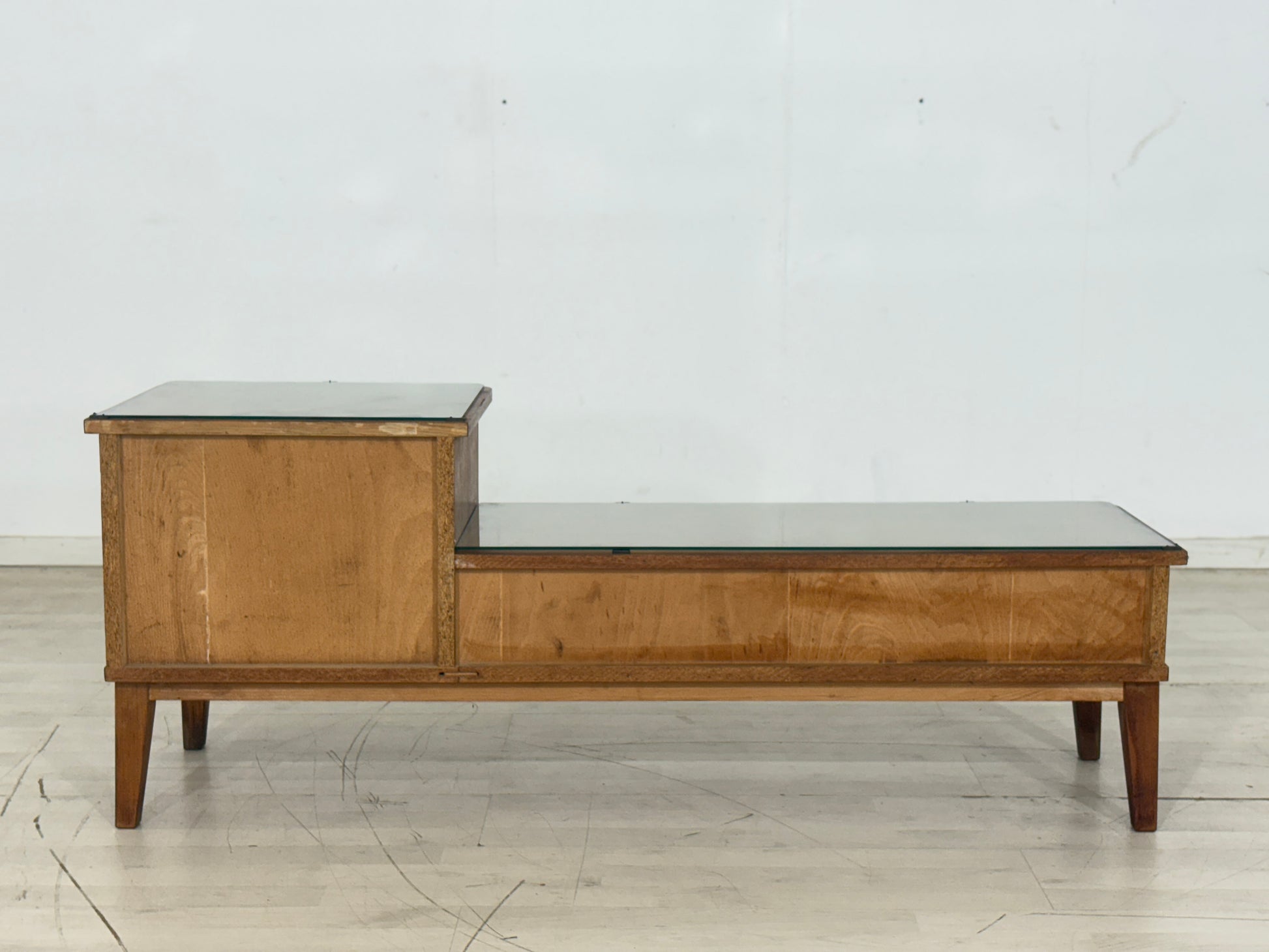 This delightful chest of drawers from the 60s is looking for a new home. It's in good condition and features a simple, timeless design. With two practical drawers and an additional compartment on the right side, it offers smart storage solutions. Whether in your living room, bedroom, or hallway, this chest of drawers will seamlessly fit into any setting. The removable glass top adds an elegant touch.
