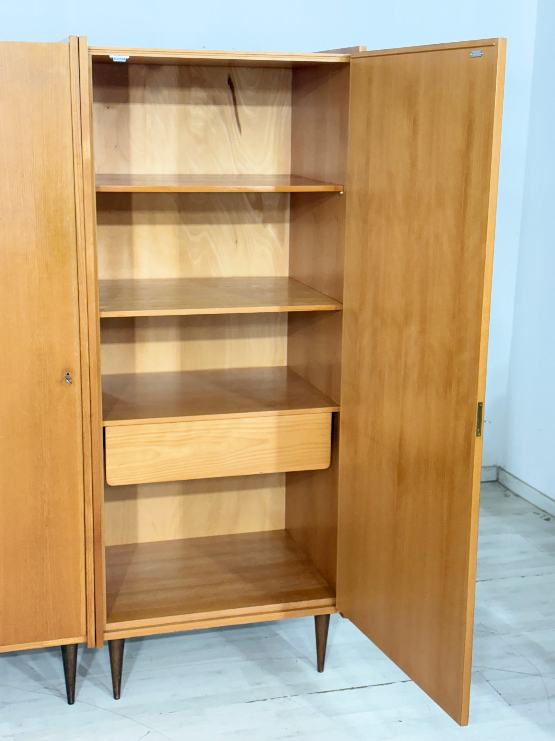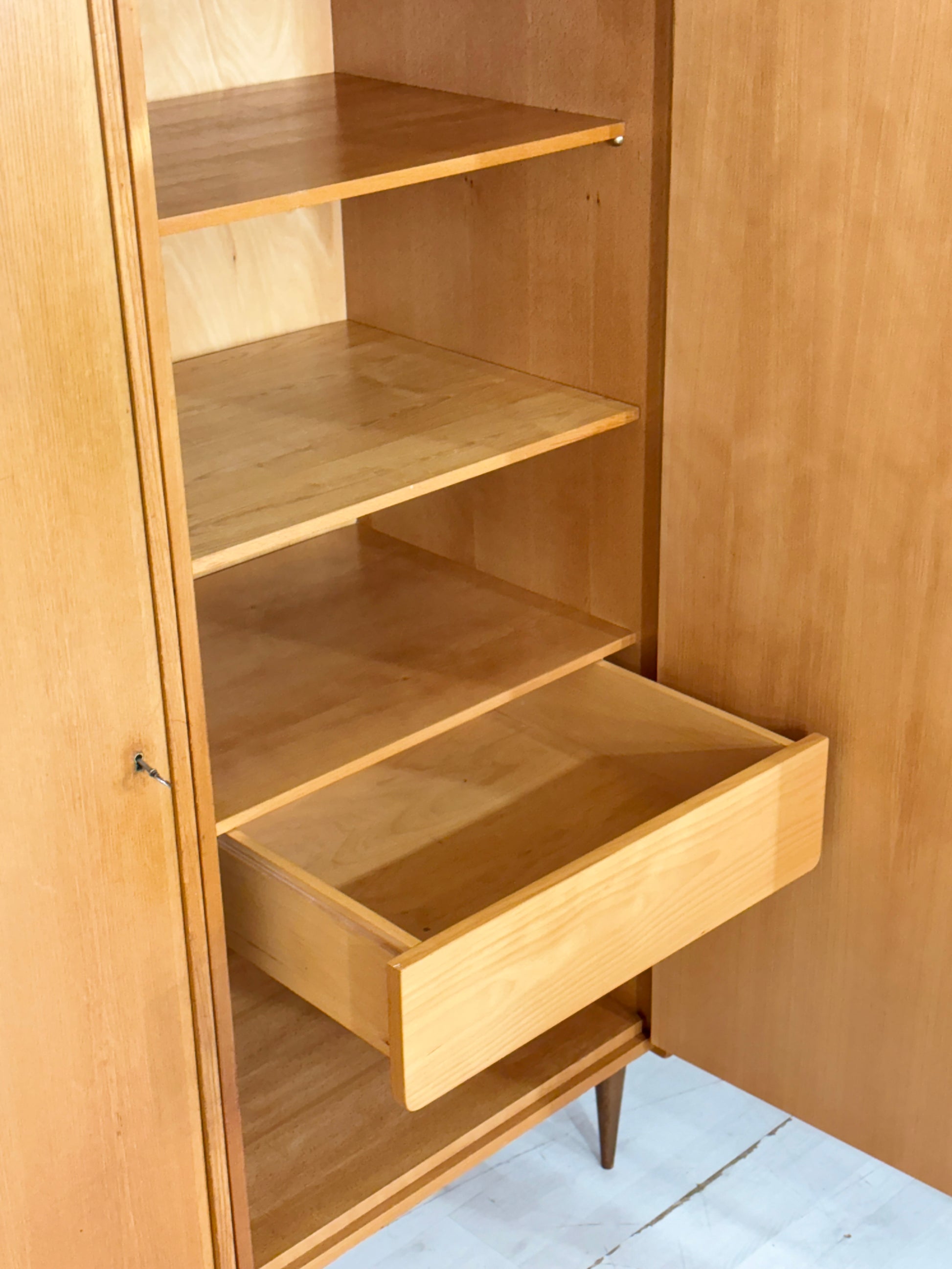 Sehr schöner Mid-Century Kleiderschrank / Wäscheschrank / Holz Schrank / Vintage Wardrobe