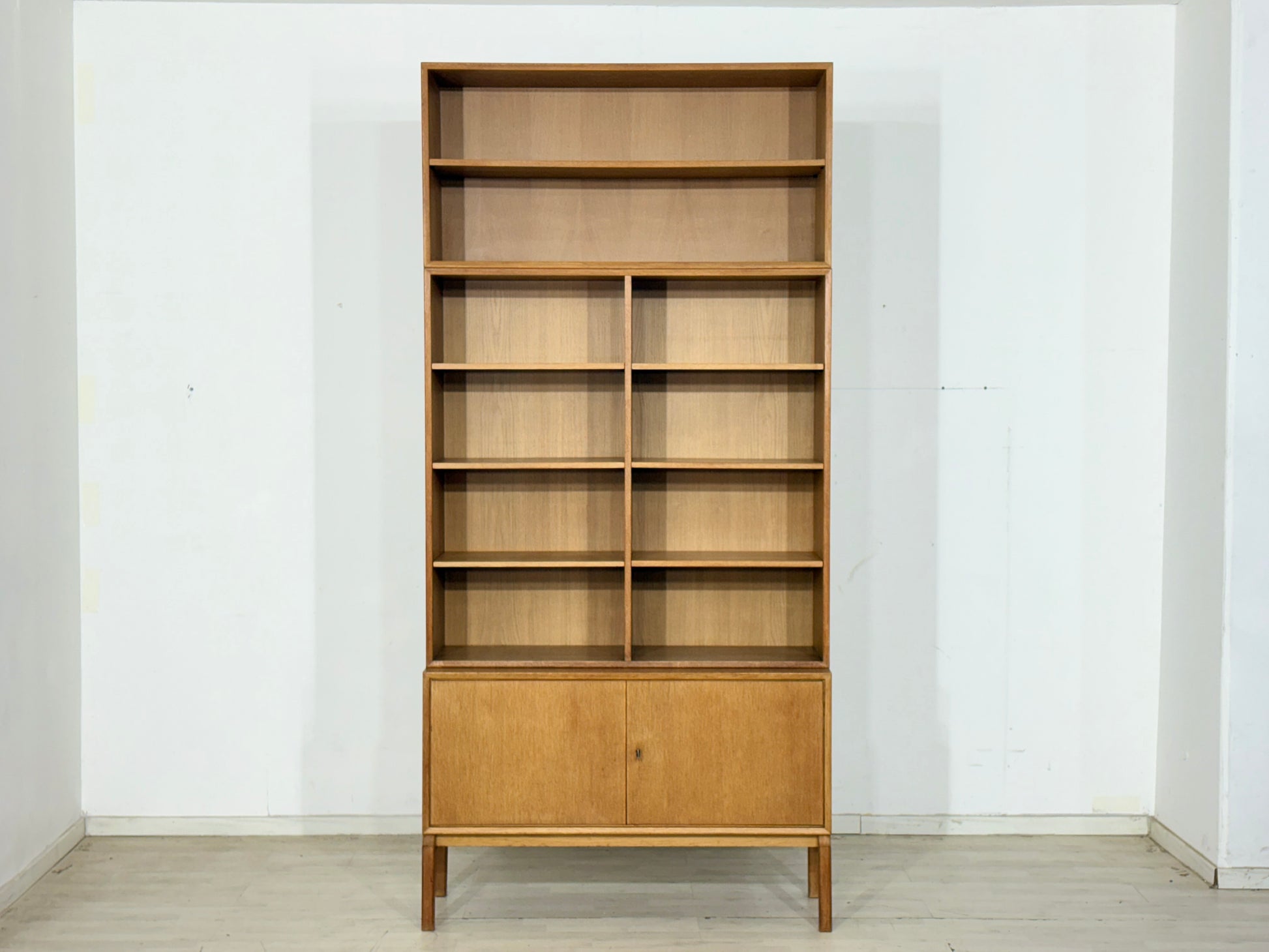 Zum Verkauf steht ein weiteres exklusives Element aus der beliebten IKEA MTP-Serie der 1960er Jahre. Dieses dreiteilige Ensemble in hochwertiger Eiche besticht durch sein minimalistisches skandinavisches Design und seine funktionale Eleganz. Im Gegensatz zur Schubladen-Variante verfügt dieses Modell über ein geräumiges Schrankfach mit Türen im Unterbau, kombiniert mit zwei klassischen Regalaufsätzen. Das Möbelstück befindet sich in einem sehr guten Vintage-Zustand und lässt sich hervorragend mit dem Schubladen-Element aus meinen weiteren Anzeigen kombinieren. Ein zeitloser Designklassiker für Liebhaber authentischer Mid-Century-Möbel.