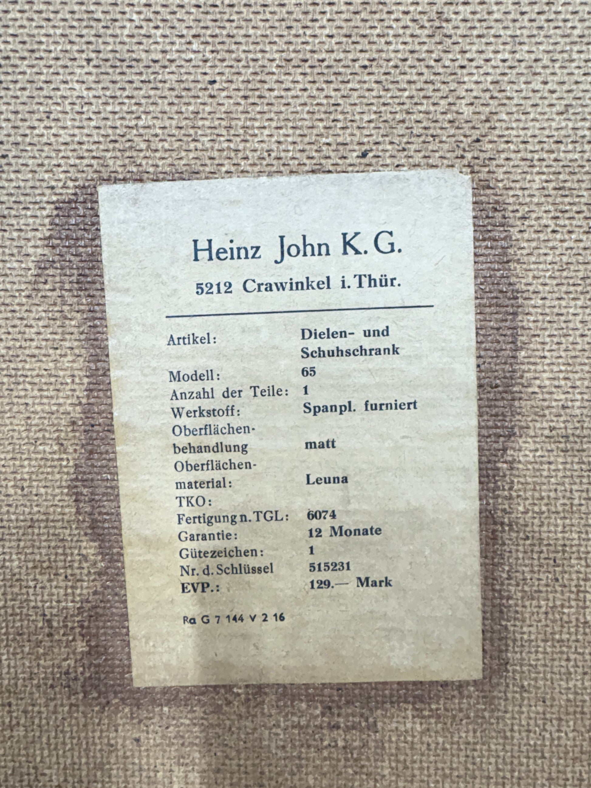 Zum verkauf steht ein sehr schöner Vintage Schuhschrank aus den 60er Jahren in einem guten Zustand.