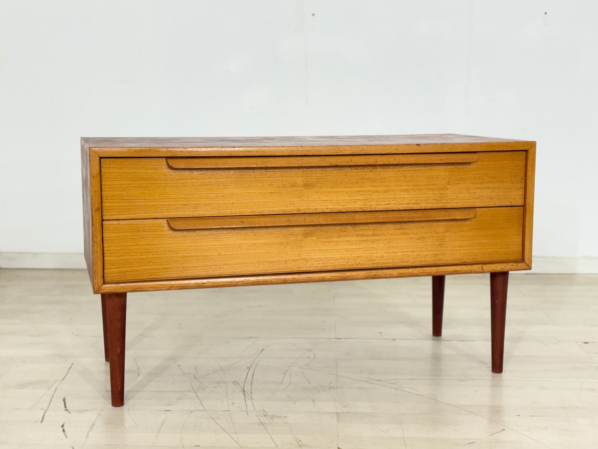 Zum Verkauf steht ein hochwertiges Vintage Lowboard aus den 1960er-Jahren von WK Möbel. Klare Linien, warme Teakholz-Maserung und die filigranen, konischen Beine unterstreichen den zeitlosen Mid-Century-Charakter.